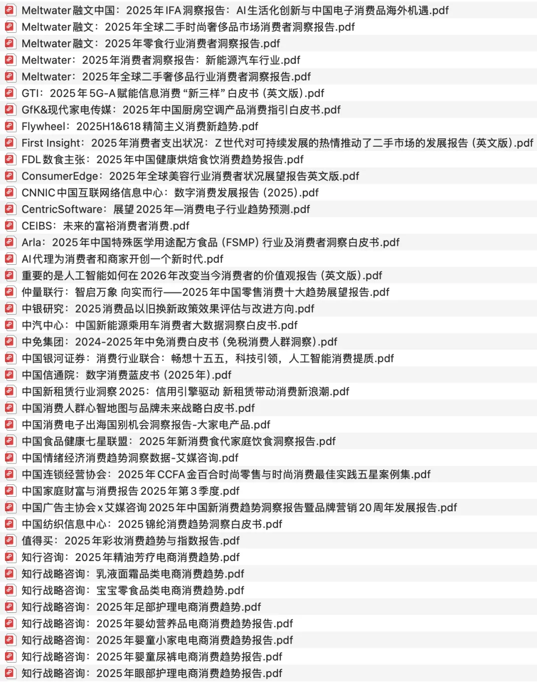 关注公众号,然后在首页对话框回复关键词“2026中国消费市场报告”,