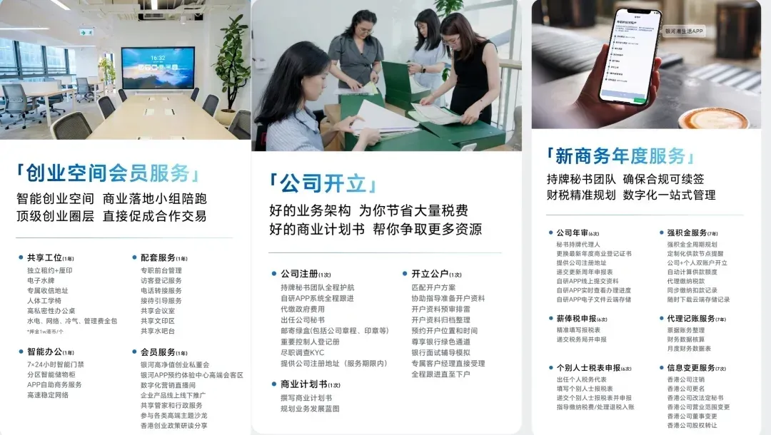 除了提供实体办公空间,银河集团依托其作为香港人才服务办公室官方合作伙伴的背景,为入驻者提供从香港公司注册、银行开户、强积金(MPF)办理、审计报税到后期年审的全链条商务服务,这种“空间+服务”的模式,旨在帮助创业者聚焦业务,同时确保所有环节符合香港法规,为续签打下坚实基础。