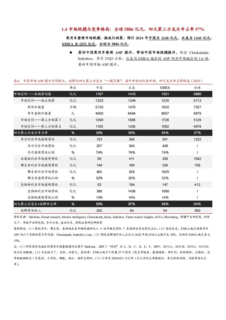 【全球行业报告库】2026全球乘用车座椅产业链竞争格局成本结构及海外龙头分析