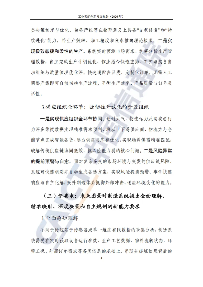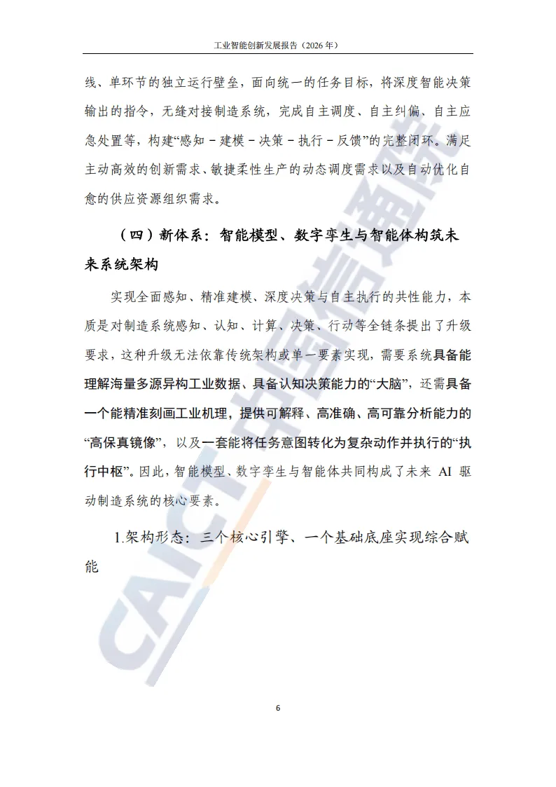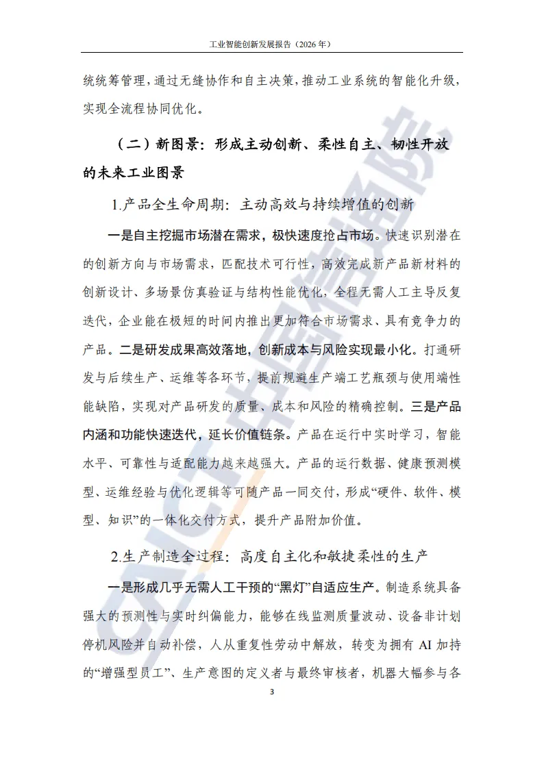 2026年3月中国信通院发布的工业智能创新发展报告,聚焦制造业转型升级与人工智能深度融合的发展趋势,勾勒出智能主导的未来制造新图景,剖析了技术演进方向、应用落地模式,并指出发展挑战与实践建议。当前制造业正步入全面升级阶段,个性化需求增长、产业结构转型与制造强国建设攻坚,与新一轮AI技术的颠覆性变革形成历史交汇,推动工业智能从判别分析的自动化智能,向具备自主决策能力的自主化智能跃升,成为制造业高质量发展的核心动力。