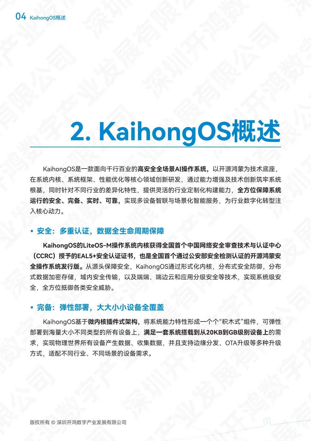 白皮书指出,万物智联时代设备互联规模激增,操作系统作为底层枢纽,其安全直接关联设备、数据、场景与生态安全,面临恶意攻击、数据泄露等多重挑战。在此背景下,KaihongOS 以安全、完备、实时、可靠等为核心特性,实现了从 20KB 到 GB 级别设备的弹性部署,还具备微秒级实时响应、多生态兼容及 AI 原生能力,为千行百业数字化转型提供支撑。