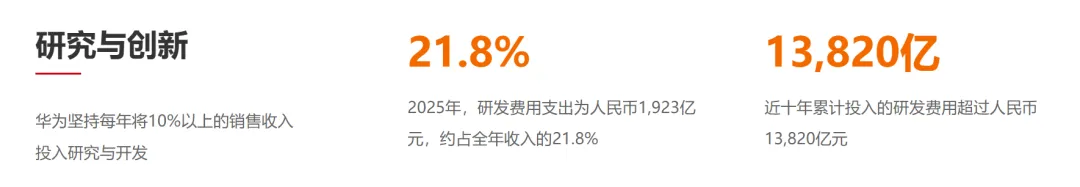 2025年华为研发投入1923.1亿,占营收高达21.8%,相当于每天砸进去5.2亿。过去十年累计研发超过1.38万亿。这种投入强度,在全球科技巨头里都极为罕见。