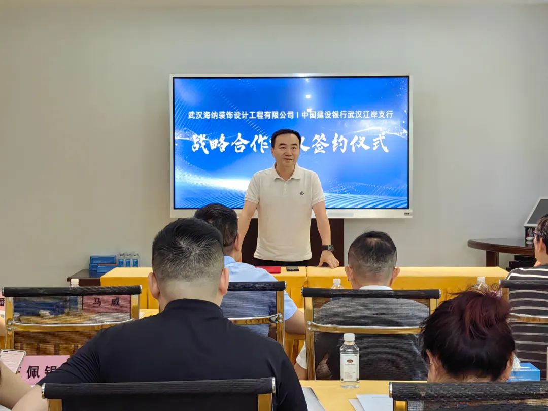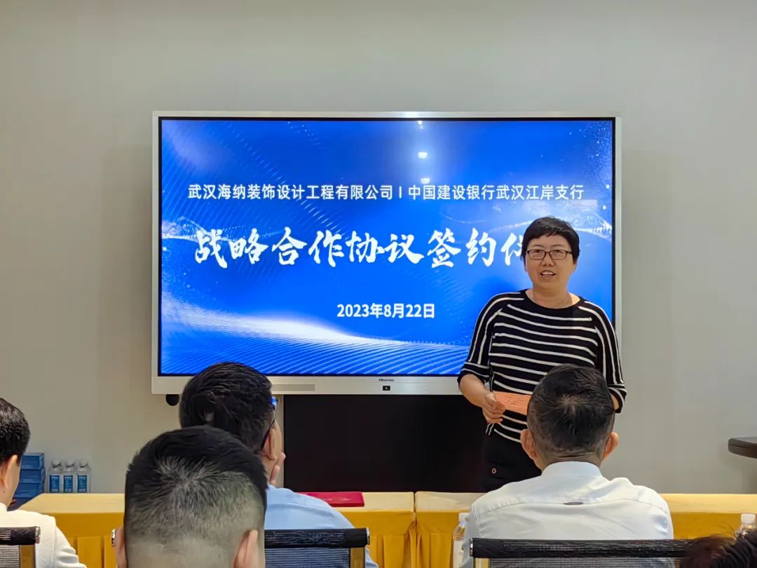 8月22日下午,建设银行武汉江岸支行联合湖北省策划行业协会、武汉市室内设计行业协会在‘中楚银’金融公司举办“建行装修分期产品推介暨战略合作签约仪式”,双方的战略合作将整合建行装修分期优惠政策及装修装饰行业的优质资源,助力市民轻松打造梦想的家。
