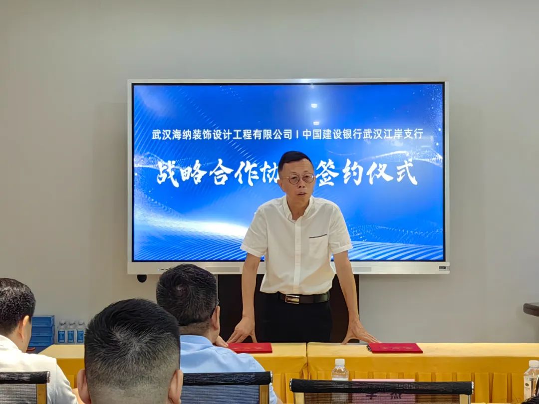 武汉市室内设计行业协会会长李杰感谢建行武汉江岸支行对本会发展的关注与支持。
