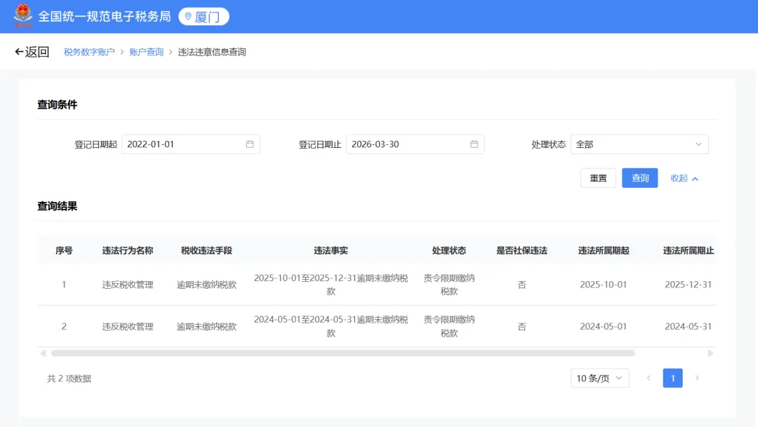 五、税务违法违章记录更新流程