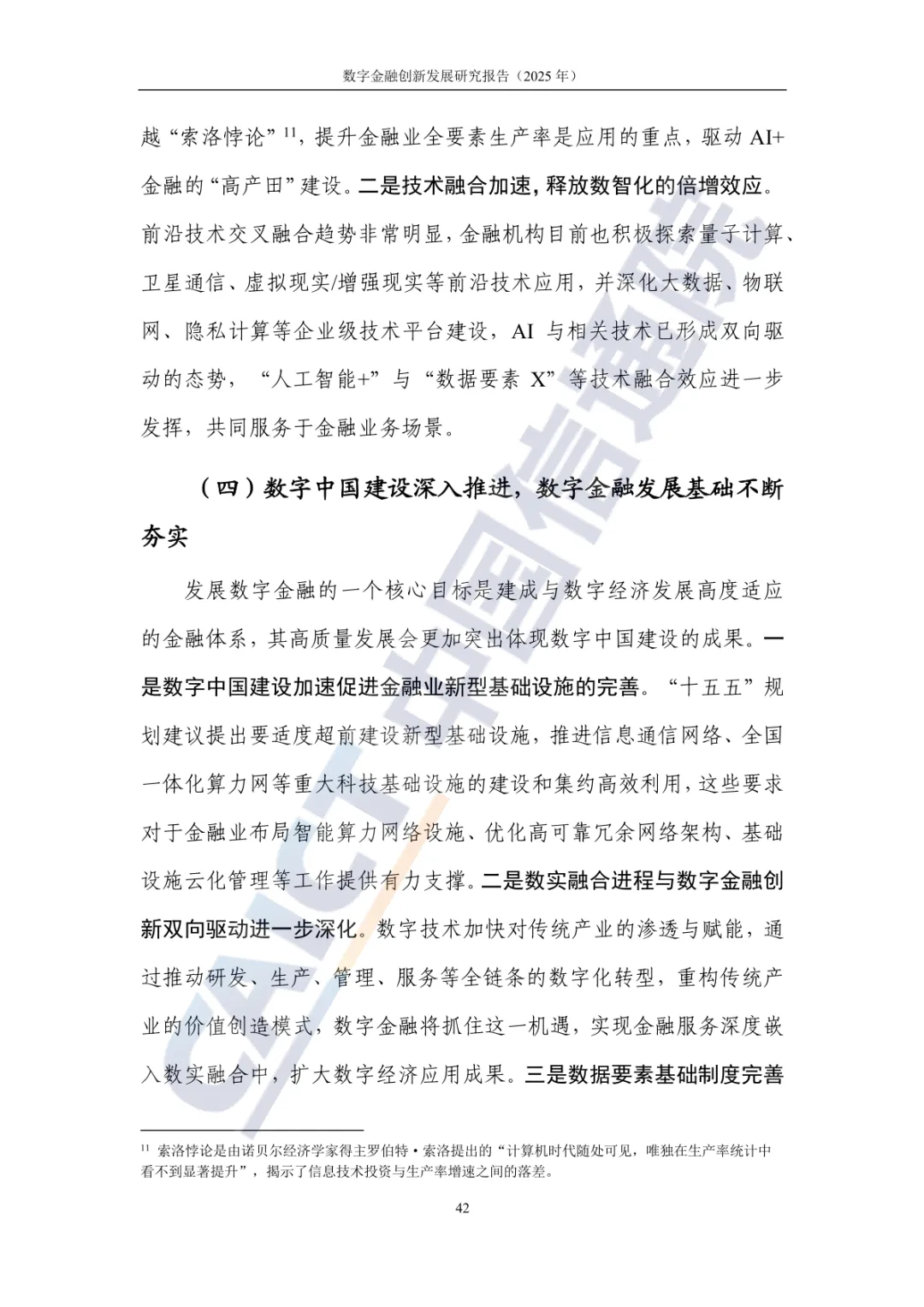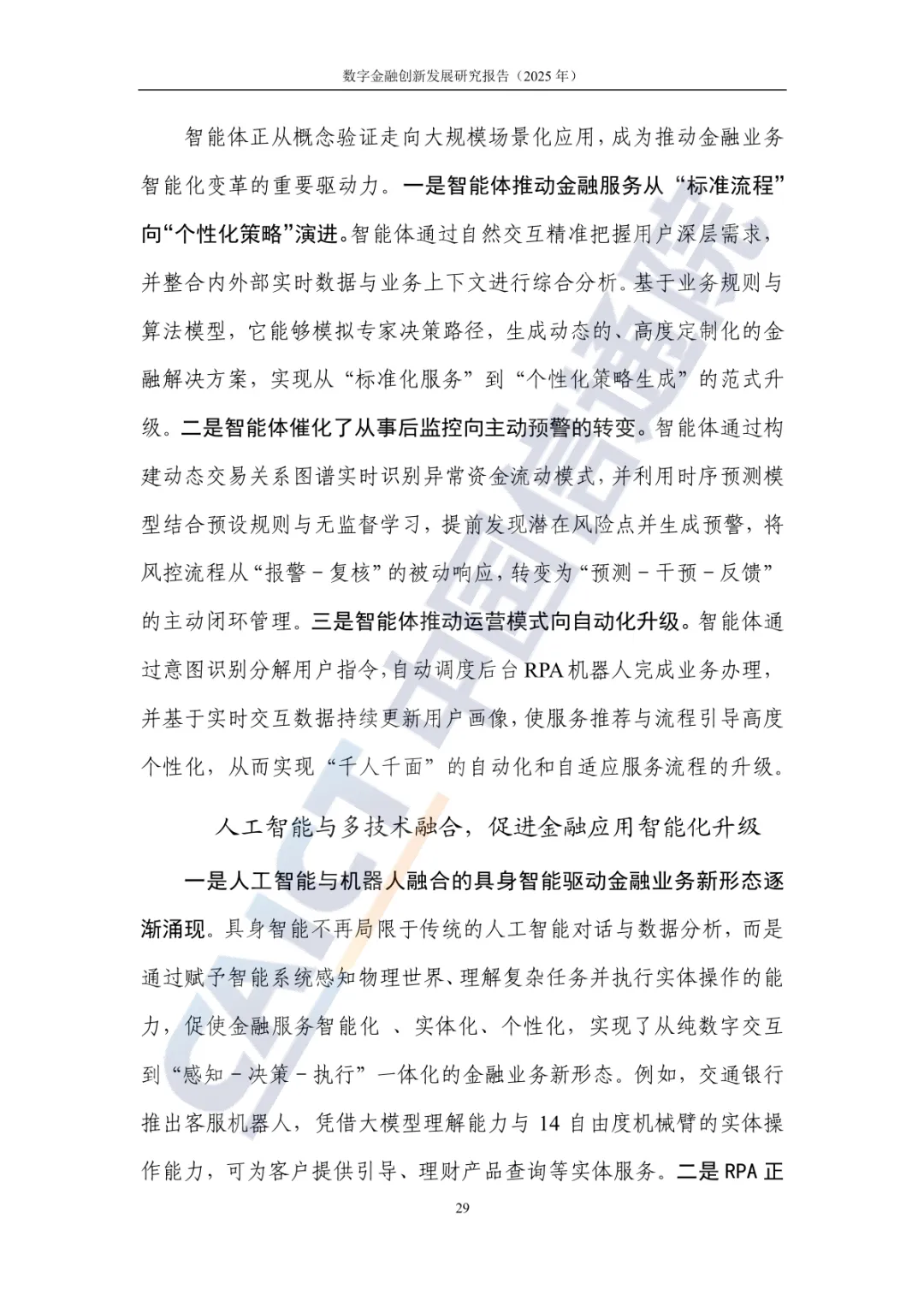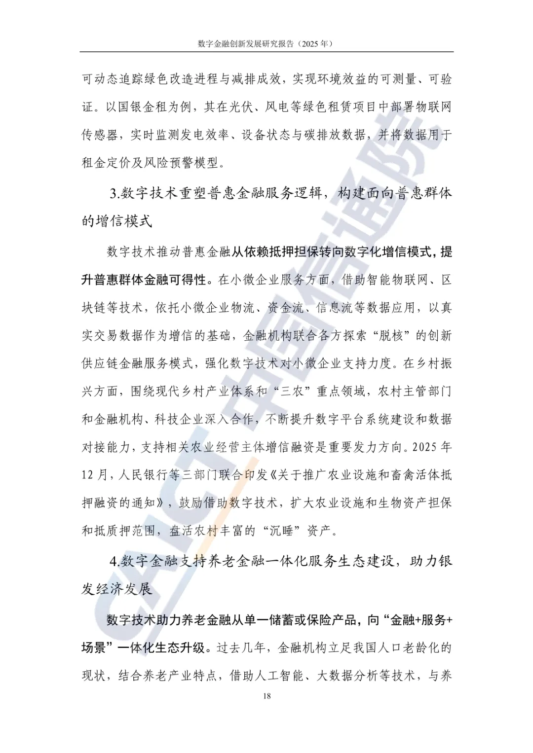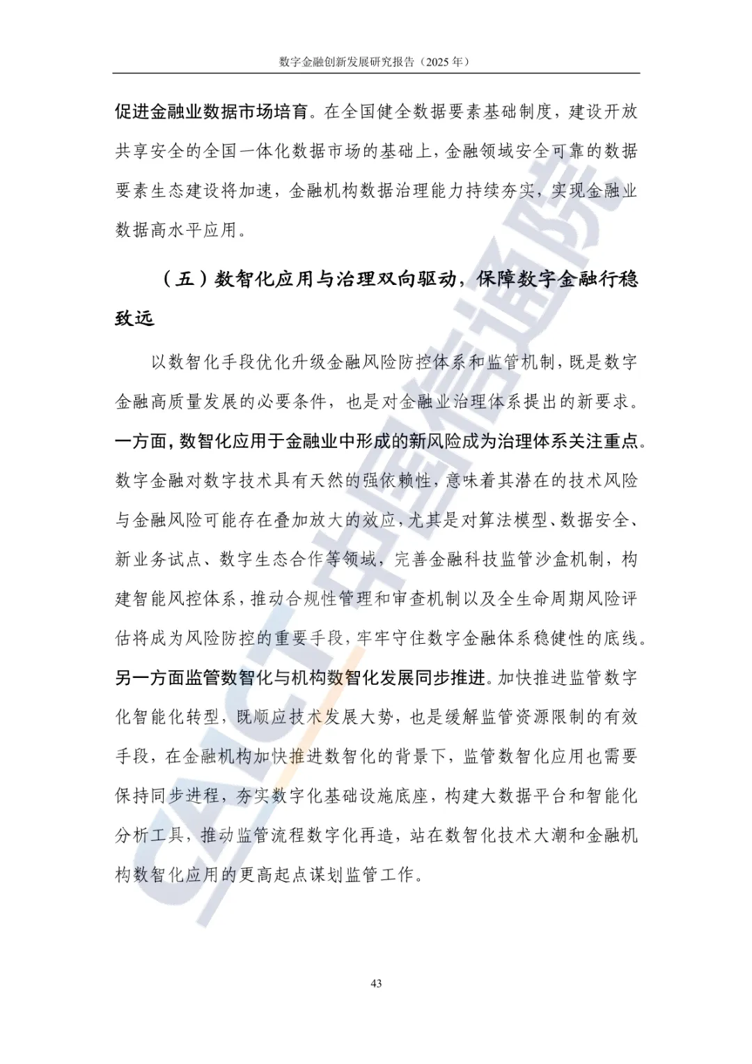 导读:数字经济与数字技术为行业发展筑牢坚实基础。数字金融依托数字化技术与基础设施,推动金融机构全面转型,助力科技、绿色、普惠、养老等重点领域服务提质增效,有效支撑产业数字化与消费扩容。行业技术体系不断完善,算力基础设施协同创新,数据要素技术实现突破,人工智能大模型与智能体成为核心驱动力量。量子科技、新一代通信技术与金融业务加速融合,拓展多元应用场景。数字金融治理体系持续健全,新业务风险防控、供应链安全、数据安全与消费者保护机制逐步成型,保障行业规范运行。金融机构推进战略调整与组织变革,构建价值导向的转型评估体系。数字金融向流态化、生态化方向发展,未来将深度融入数字中国建设,依托技术创新与治理升级,构建适配数字经济的现代金融体系。