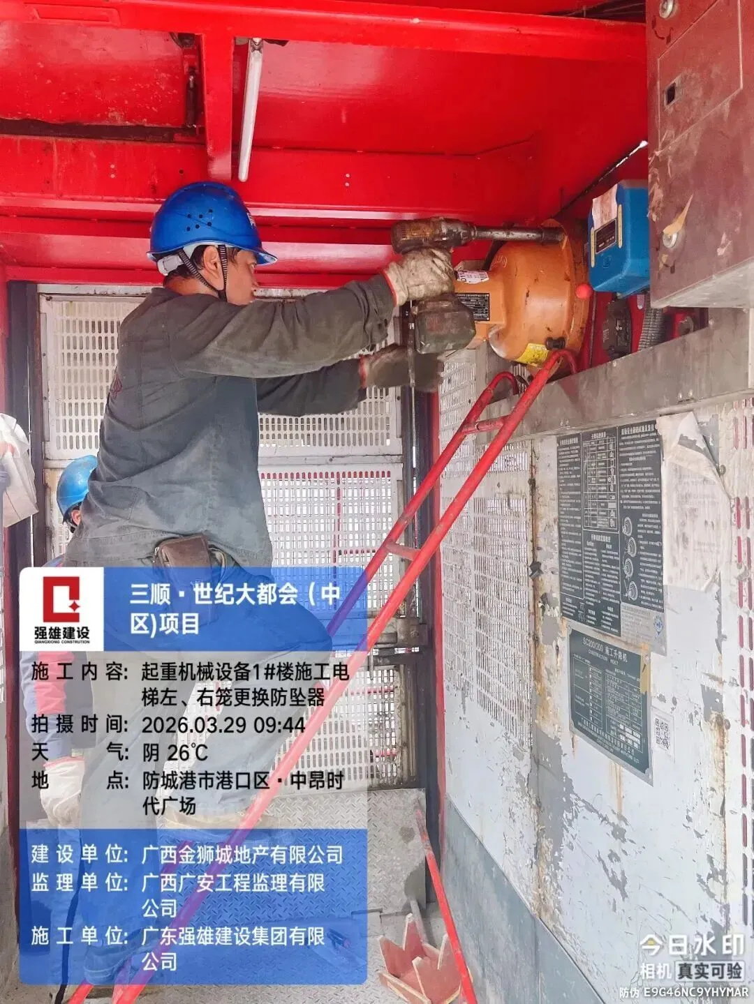 1#楼,施工电梯左、右笼更换防坠器;1#施工塔吊拆除。