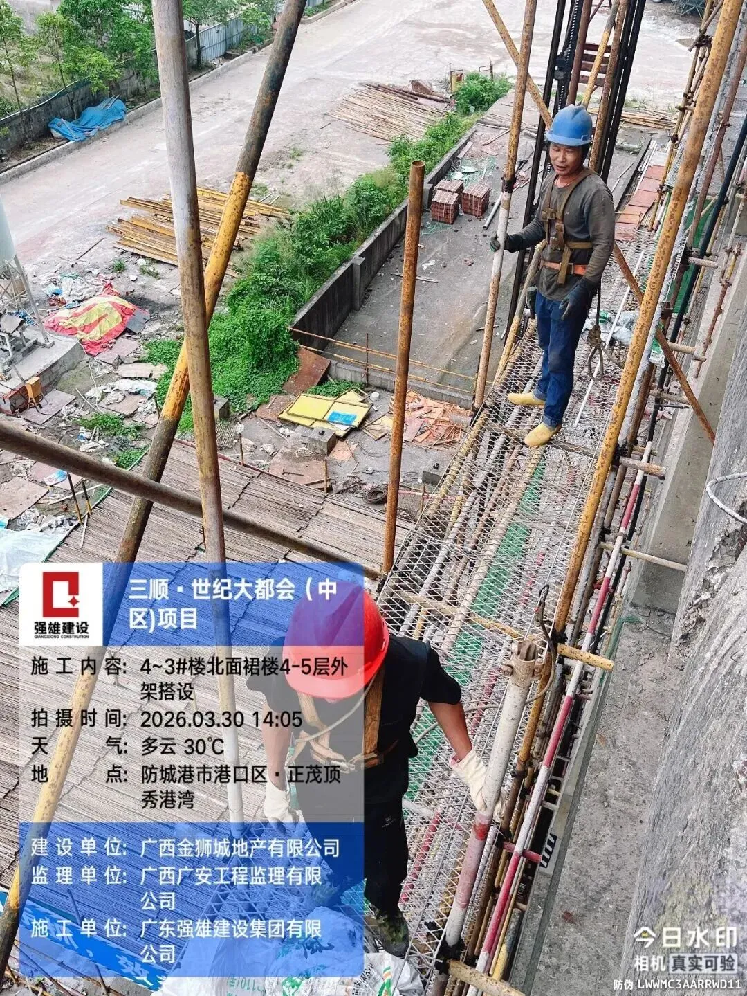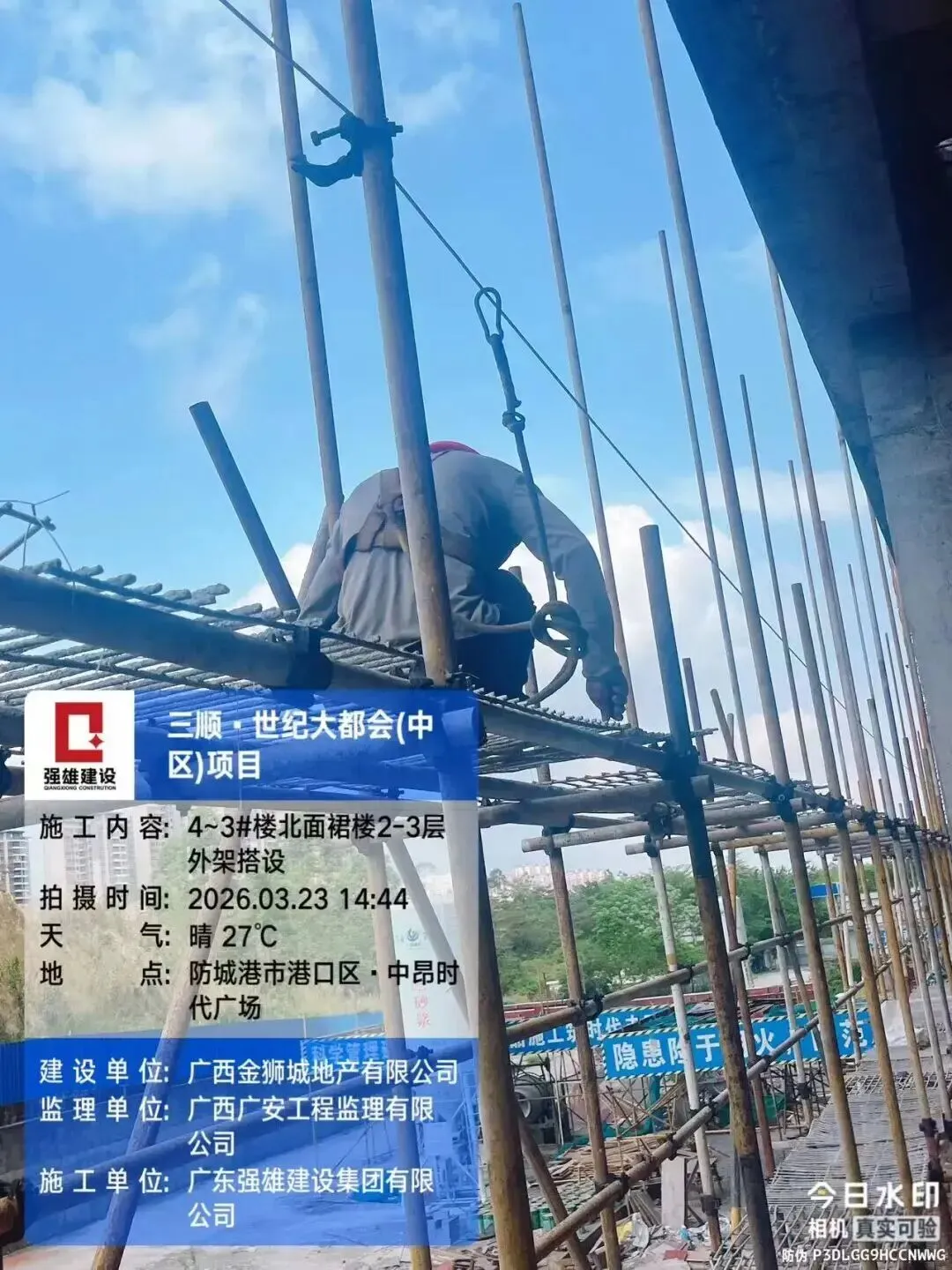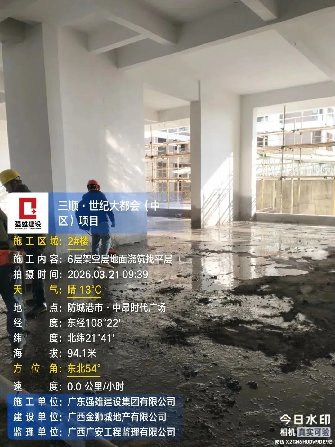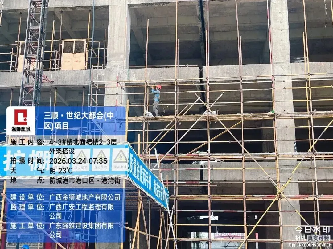 由防城港市中级人民法院审理,广西汇力律师事务所担任管理人工作的广西金狮城地产有限公司破产案件中的原“三顺·世纪大都会(中区)”项目续建工作2026年3月21日—3月31日项目现场施工进展情况如下: