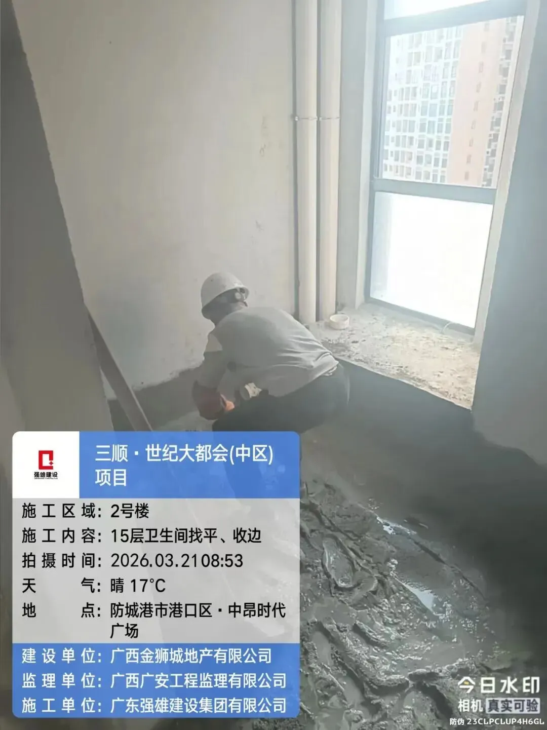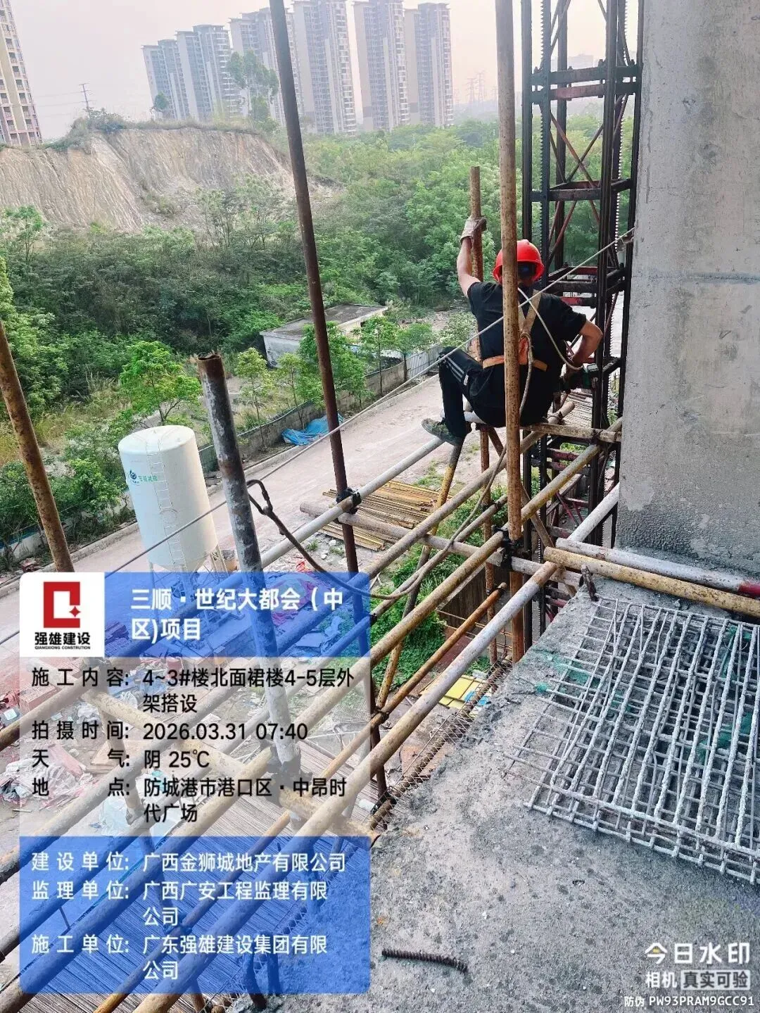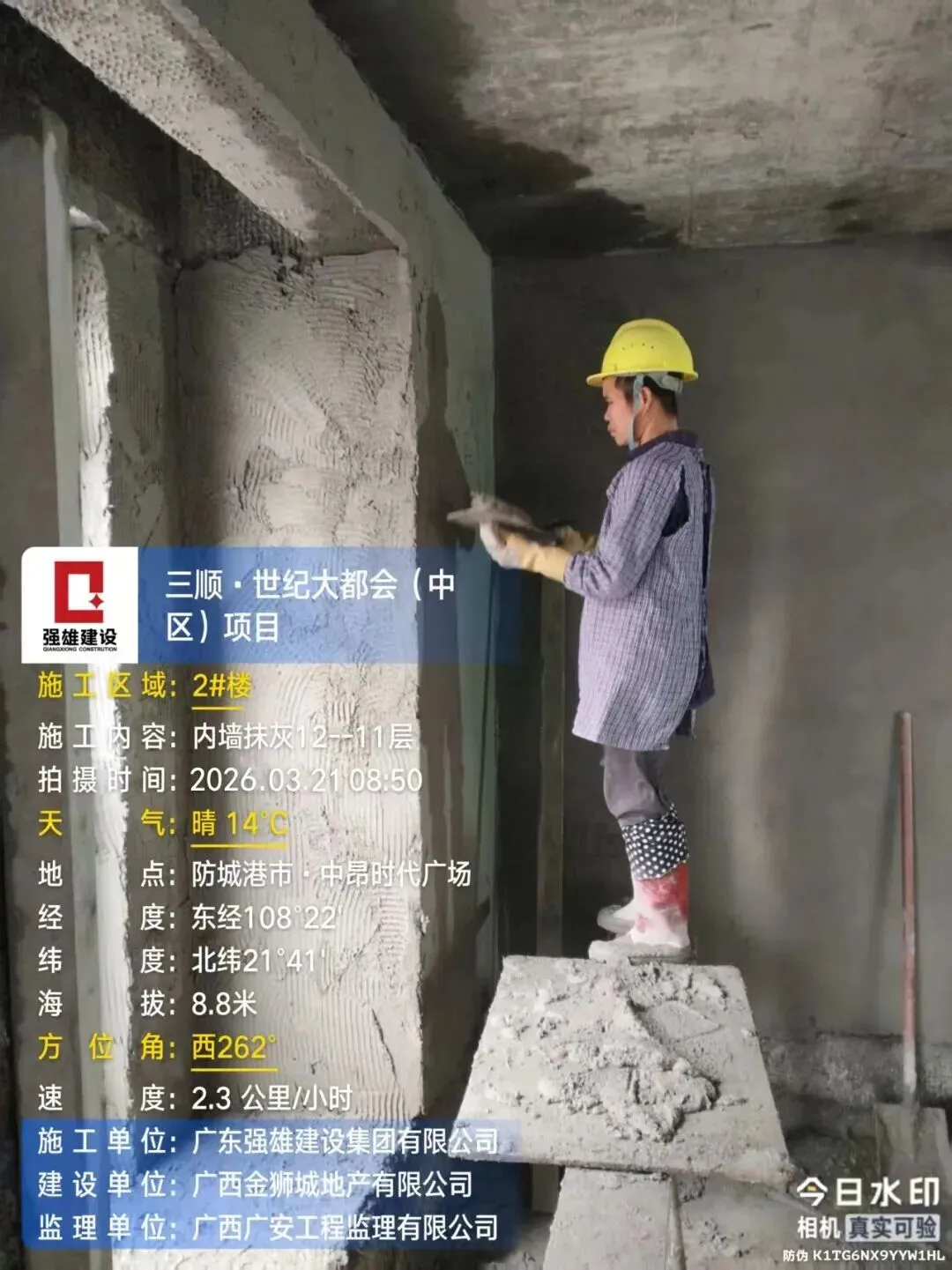由防城港市中级人民法院审理,广西汇力律师事务所担任管理人工作的广西金狮城地产有限公司破产案件中的原“三顺·世纪大都会(中区)”项目续建工作2026年3月21日—3月31日项目现场施工进展情况如下: