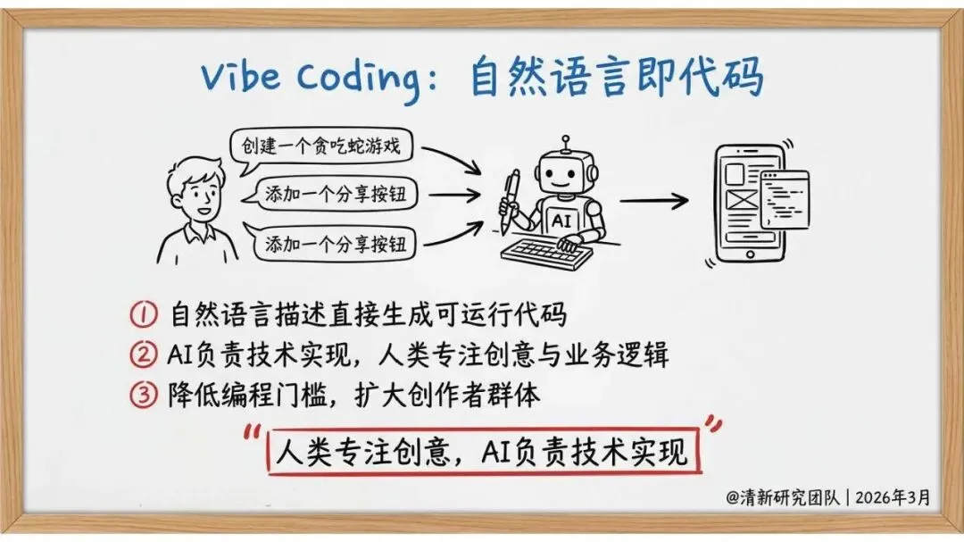 VibeCoding 让自然语言可直接生成可运行代码,降低编程门槛;