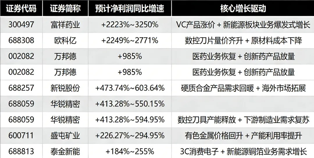 说完了指数,给大家梳理下目前市场上已经披露的业绩较好的公司