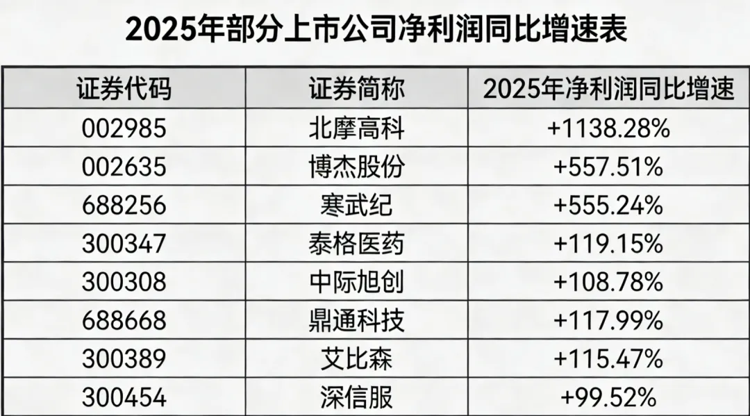 当前处于 2025 年年报与 2026 年一季报的密集披露期,以下为截至 2026 年 4 月 2 日已披露的、归母净利润同比增速超 30% 的核心标的,分为两大类别: