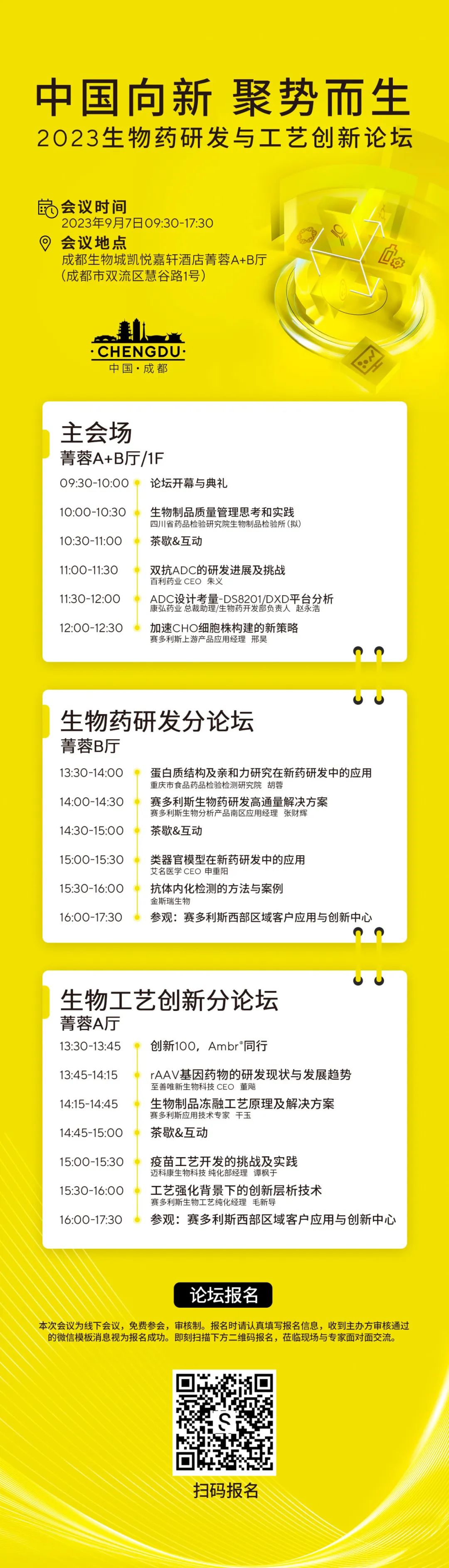 2023年9月7日,药融圈携手赛多利斯共同举办2023生物药研发与工艺创新论坛,本次论坛将聚焦政策管理规范、创新药研发的思路、工艺与产业化进展、挑战和机遇等话题,特邀来自药检机构、创新药企、生物技术和服务等领域多位权威专家与产业先锋进行分享交流及产品展示,共同探索生物药研发与工艺创新之路。