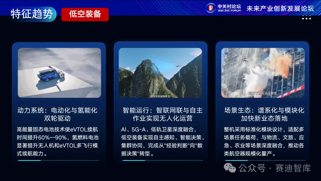 低空装备产业迎来关键发展期,技术演进呈现三大核心趋势。动力系统层面,电动化与氢能化双轮驱动,高能量固态电池与氢燃料电池技术大幅提升航空器续航能力;智能运行层面,依托AI、5G-A及低轨卫星技术,正实现从有人操控向自主感知、智能决策的无人化运营转型;场景生态层面,谱系化与模块化设计加速技术成果产业化,推动低空装备在物流、文旅、应急等多领域规模化应用,为低空经济发展奠定核心基础。