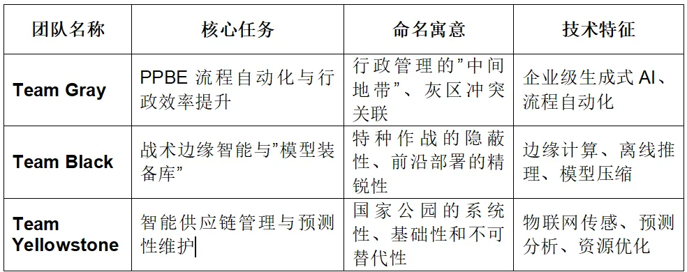 从项目管理角度,三团队的并行推进需要有效的协调机制。虽然各团队聚焦不同任务领域,但存在潜在的技术共享需求,如Team Black的模型压缩技术可能惠及Team Gray的边缘部署场景,Team Yellowstone的预测分析算法可能为Team Black的态势感知提供组件。建立跨团队的技术交流平台和代码共享机制,避免重复开发和资源浪费,是近期管理的重要课题。