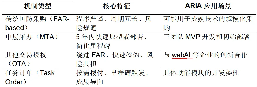 资金保障机制的创新同样值得关注。ARIA计划采用“其他交易授权”(OTA)等灵活合同机制的可能性较高,这一机制已被国防部与AI企业的合作所采用。OTA绕过传统联邦采购法规的繁琐程序,允许更快速的供应商选择和合同谈判,与ARIA快速实施的核心理念高度匹配。此外,任务订单(Task Order)模式的运用 ,使资金拨付与具体交付成果挂钩,增强了资源使用的效率和问责性。