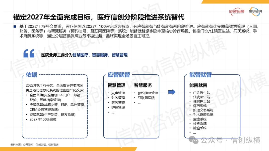 数智医疗信创,简单说就是把自主可控的信息技术,全面应用到医疗的诊疗、管理、科研等各个环节,核心是实现医疗信息系统的国产化替代,保障患者数据安全和医疗服务连续稳定。