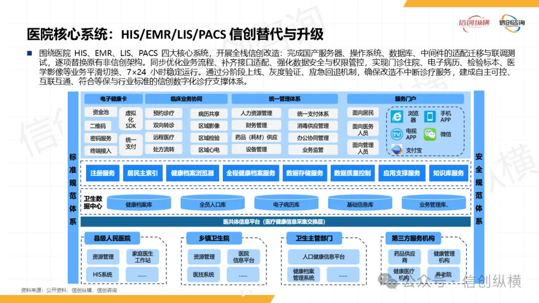 它不是单一的技术替换,而是涵盖底层硬件、操作系统、数据库,到上层诊疗软件、智能应用的全链条自主可控。不同于普通医疗信息化,其核心诉求是“安全可控+智能赋能”,既要防范医疗数据泄露、系统瘫痪等风险,也要通过AI、大数据等技术,提升诊疗效率和服务质量,这也是当前医疗行业高质量发展的核心需求。