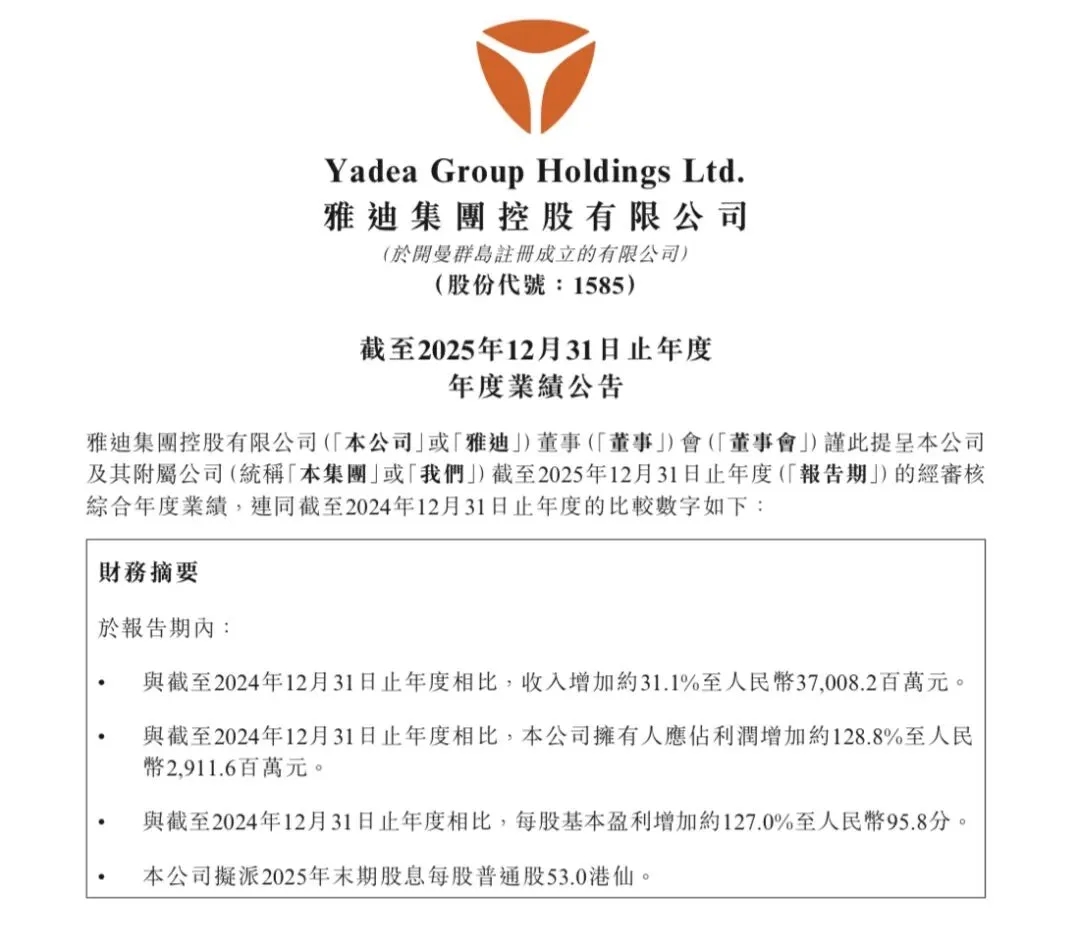 2025年,雅迪扭转了2024年营收、利润双下滑的态势,实现营业收入370.08亿元,同比增长31.07%;归母净利润29.12亿元,同比增长128.83%;全年电动两轮车销量约1627万辆。