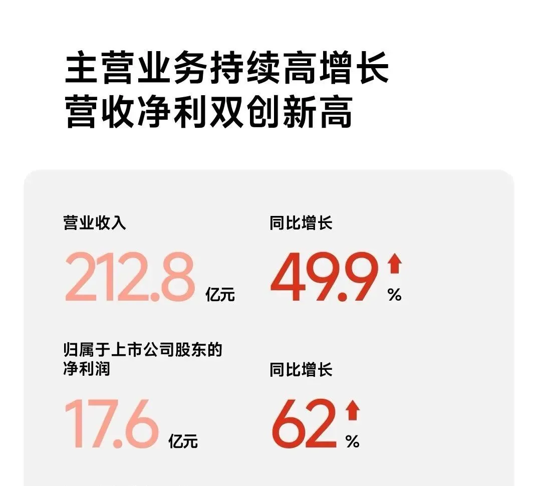 财报数据显示,2025年九号公司实现营业总收入212.78亿元,同比增长50%左右;归母净利润17.58亿元,同比增长61.84%。其中电动两轮车国内销量达408.7万台,成为主要增长引擎。