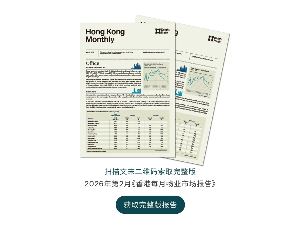 在外围环境持续充满挑战的情况下,中东的资本及家族办公室预期将进一步把投资组合分散至亚太区其他主要区域,包括香港,此趋势有望支持小面积甲级写字楼的需求。