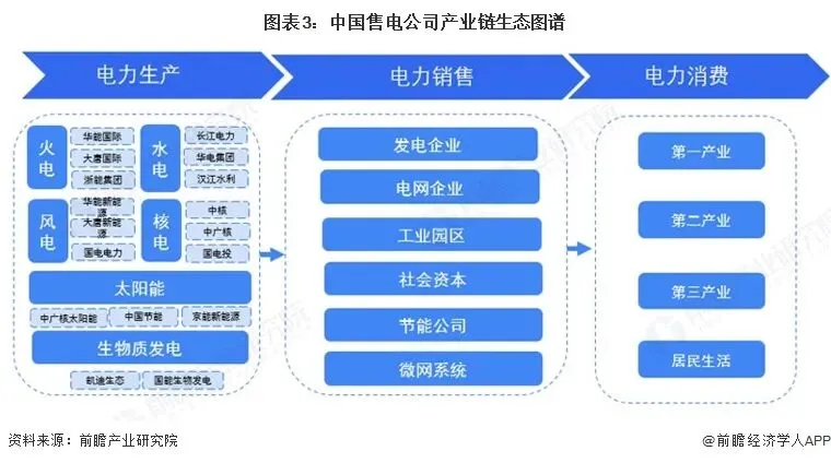 售电是电力生产与消费的核心环节,其既是电力生产的出口,又是用户服务的入口。由于电力生产的特性,无法对已生产的电力进行大规模储备,电力生产与消费必须处于基本均衡的状态才可以提高经济性,避免资源大量浪费。随着技术和体制的双重革新,在未来的产业链中,必定是消费决定生产,消费将处于产业链的优势地位,售电则是为用户电力消费提供服务的核心环节,售电企业成为电力市场的重要参与者。