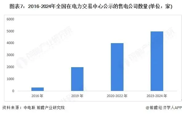 截至2024年底,全国累计注册售电公司数量超过5000家,较2016年新电改初期的不足300家增长近17倍。这一数据反映了电力体制改革对市场活力的显著激发,尤其是2019年后随着《售电公司管理办法》等政策落地,社会资本加速进入售电领域。2019年全国新增注册售电公司约600家,累计注册量突破2000家;2020-2022年,受疫情影响,年新增注册量稳定在500-800家区间,至2022年初国网区域公示通过的售电公司已超4000家;2023-2024年,随着电力现货市场建设全面铺开,年新增注册量回升至1000家左右,2024年累计注册量突破5000家。