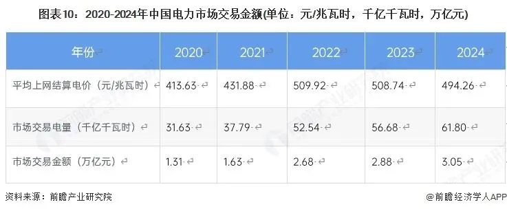 前瞻参考华能国际电力股份有限公司历年平均上网结算电价以及电力市场交易电量初步统计2024年全国电力交易规模约3.05万亿元,同比增长5.92%。