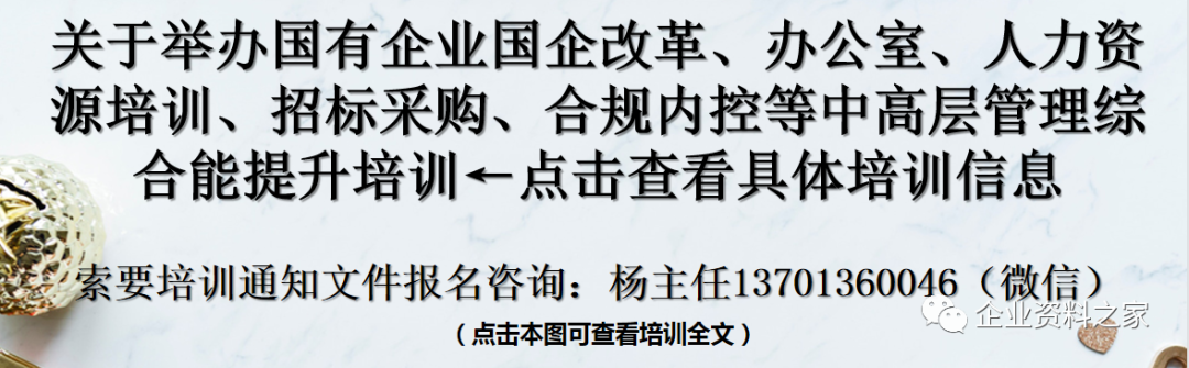 【添加微信号13701360046(微信)备注单位+姓名 入国企工作交流微信群 更多学习交流:国企党建、纪检、国有企业常用政策汇编、各种制度汇编、办公室写作、国企改革三年行动、三项制度改革、契约化任期制方案、四会一层、职业经理人、薪酬绩效体系、招投标、片区开发、EPC项目总承包、人力资源管理、工程造价、资质改革等】