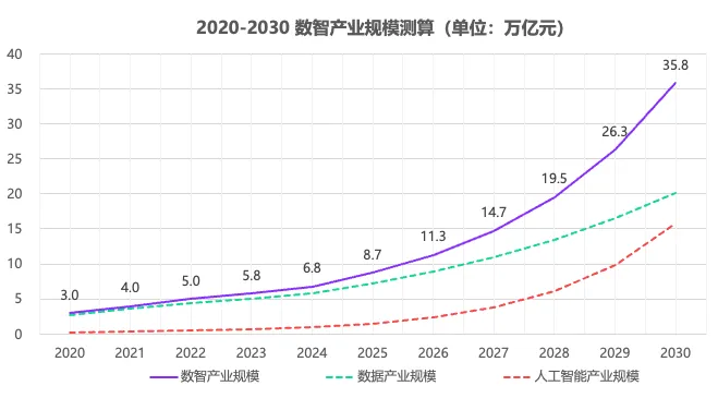 •产业规模持续高增:2024年我国数智产业规模达到6.78万亿元,2020-2024年平均每年增长26%;按这个势头,2025年将突破8.7万亿元,2026年迈过10万亿元大关,到2030年更是有望达到35.8万亿元,成为拉动经济增长的重要引擎。