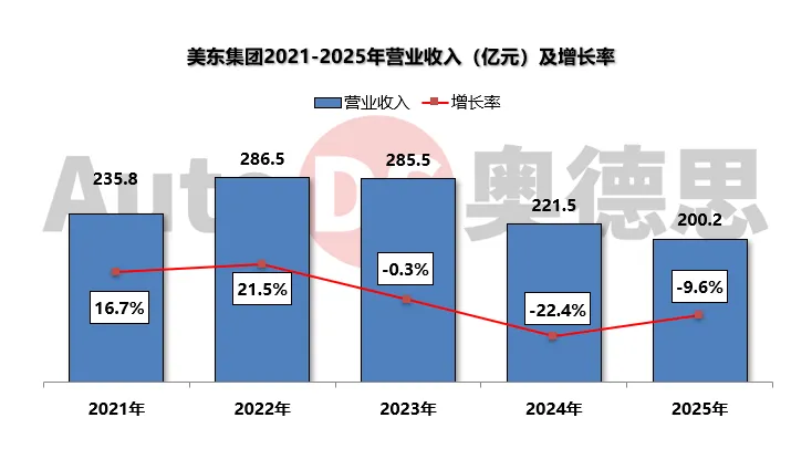 2025年,美东集团实现收入为200.2亿元,同比2024年下降9.6%。