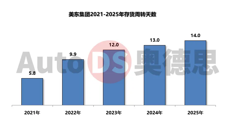 2025美东汽车库存周转天数为14.0天,较去年同期增加1.0天。