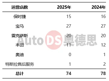2025年共售出57554辆新车,同比上升1.1%,增长主要由于集团的高效运营以及低库存策略,销量增长主要得益于 "两新政策"(汽车以旧换新和报废更新)的推动,但价格下降抵消了销量增长的积极影响。其中保时捷、宝马及雷克萨斯销量分别为7550辆、20074辆及11358辆。