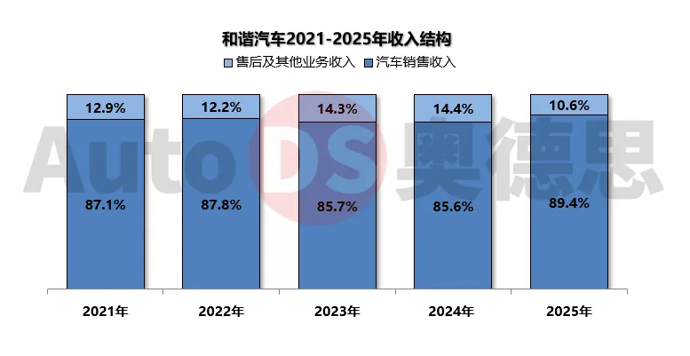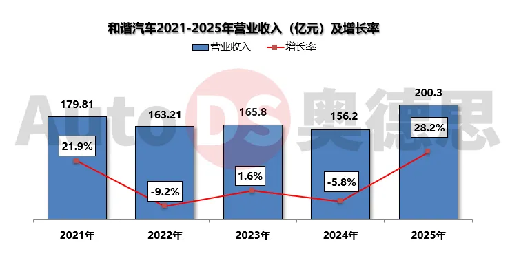 2025年,和谐汽车营业收入为200.27亿元,同比增长28.2%。其中,新车销售收入增长33.8%至178.96亿元,增长主要由于集团国际销售网络的策略性扩张,从而扩大了市场覆盖范围,并增加了主要地区的销量;售后服务业务收入下降4.6%至20.99亿元。