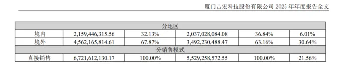 从区域布局来看,公司境外收入达45.62亿元,占总营收比重高达67.87%,同比增长30.64%,全球化市场拓展成效显著,海外市场已成为公司业绩增长的核心支撑。