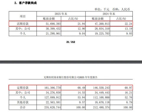 对公客户普遍更愿意将资金存为定期,这可能与该行2025年为吸引大量资金,而提高定期存款利率有关。当时,许多国有大行都在下调利率,整体存款利率呈下降趋势。而不少农商行却为了吸引到更多存款,普遍抬高了自家的存款利率。
