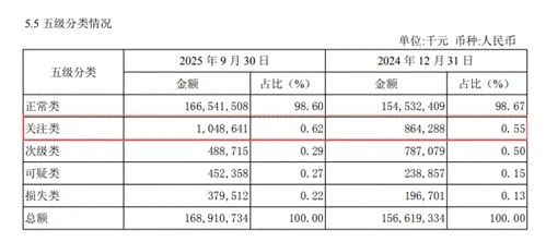 另外,笔者注意到,该行不良贷款率的“稳定”可能具有误导性。其财报中的“关注类贷款”(没有违约但已出现还款困难苗头的贷款)余额和占比都有所提升。