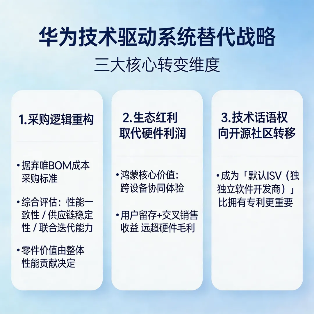 如今,华为推动的是"技术驱动"的系统替代——整条产业链协同优化,以系统性能取胜。