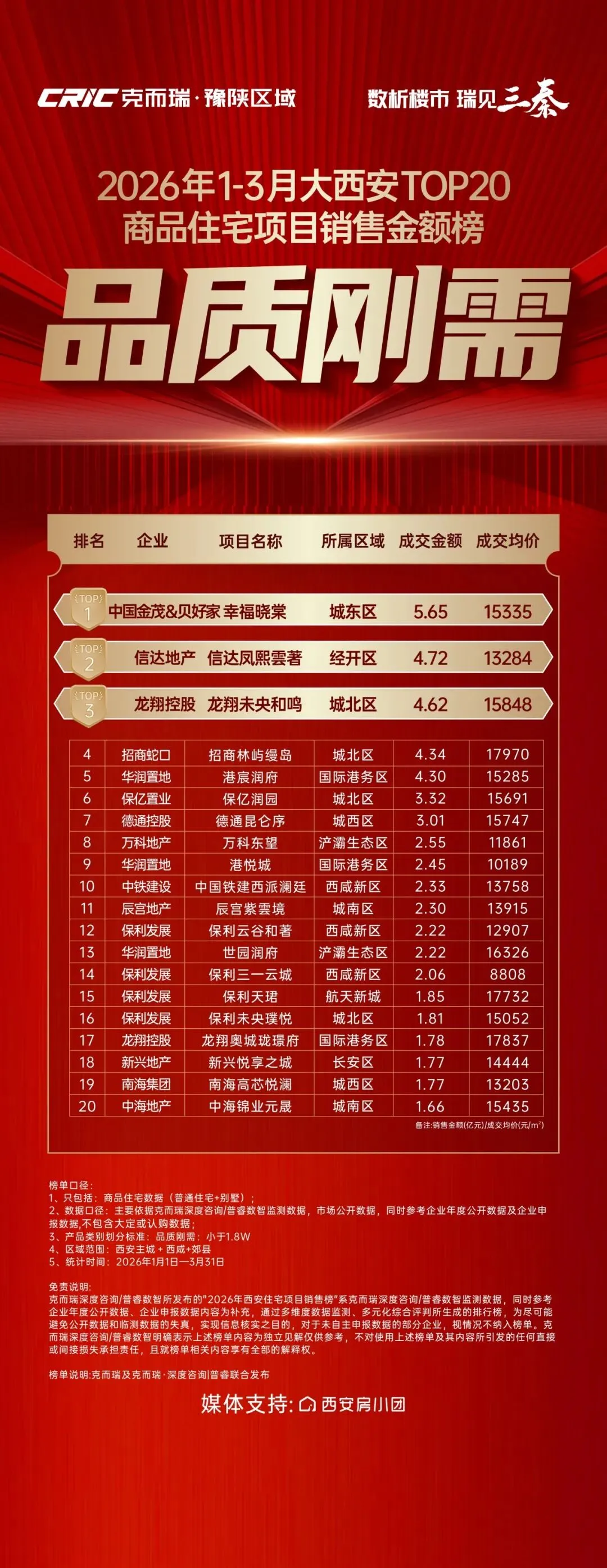 龙翔控股依托未央和鸣、奥城云邸等主力项目在城北、港务区两大热点板块持续去化,业绩表现稳健。1-3月整体业绩在民企中排名第二。