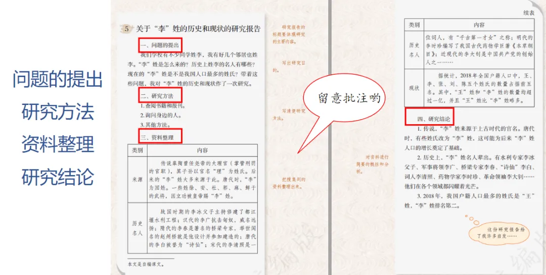 研究方法: 分点罗列研究时用到的主要方法。比如查资料、问老师、翻看课本,或是上街观察招牌、检查同学作业本,把怎么做的如实记录下来。