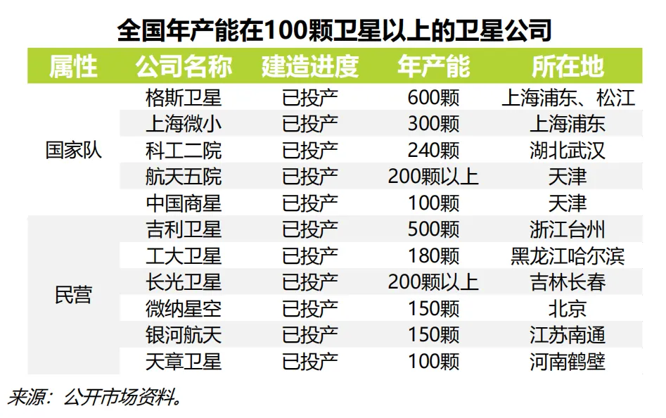 从现阶段已经公开的报道上看,中国卫星每年的批产能力已经超过了 2000 颗,在国家层面这是一个非常重要的基数。但需要注意的是,在星链等低轨星座的推动下,很多卫星工厂的产能仅限于 500 公斤以下的低轨通信卫星,并非所有类型的卫星,都能在这样的产能下批量复制。产能是一个指标,而卫星的设计能力和重量是另外的评估指标,能够在满足客户 需求的基础上,通过内部设计而提升性能、压缩成本,才是卫星大国到卫星强国的重要转变。卫星的设计能力也是未来中国民营卫星公司的共同课题。