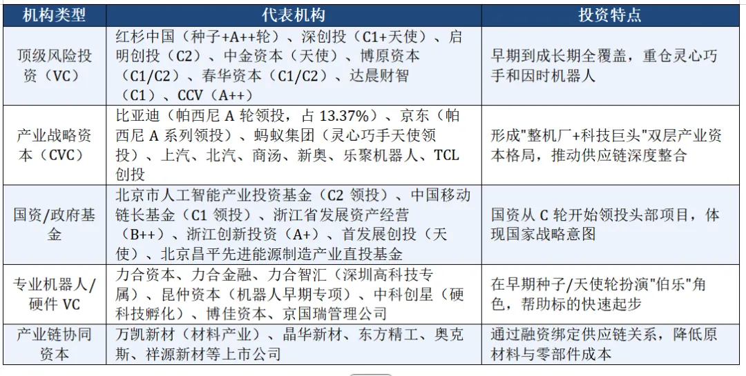·红杉中国、深创投、中金资本、蚂蚁集团等顶级机构均深度布局,产业资本(京东、比亚迪、上汽等)异军突起。