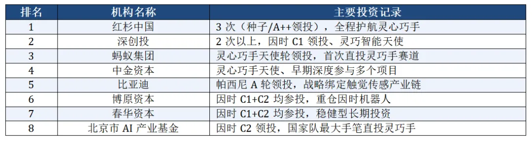 灵巧手赛道的资本生态呈现"顶级VC+产业CVC+国资基金"三驾马车并驾齐驱的态势。