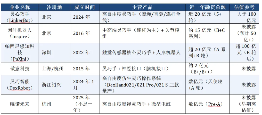 ·曦诺未来(杭州)成立不足一年即完成Pre-A轮数亿元融资,展现灵巧手赛道早期热度。