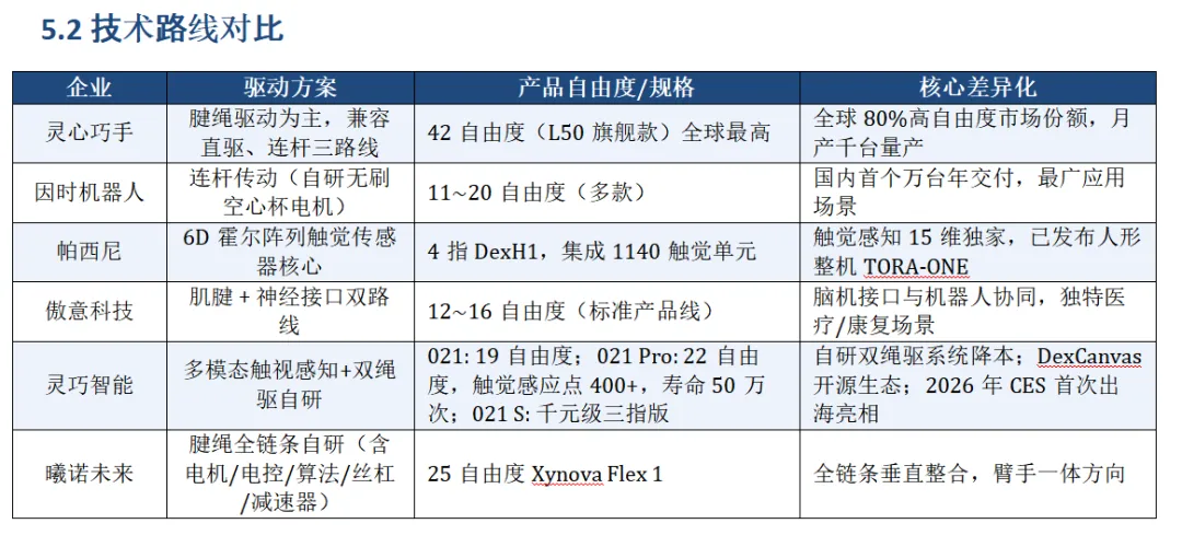 基于以上分析,各企业在灵巧手赛道呈现明显的梯次分化: