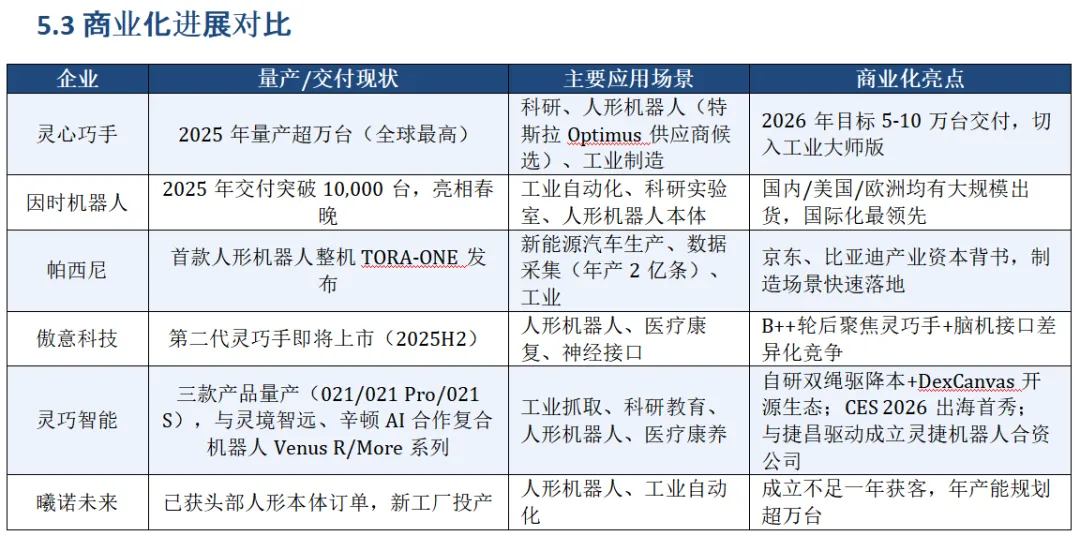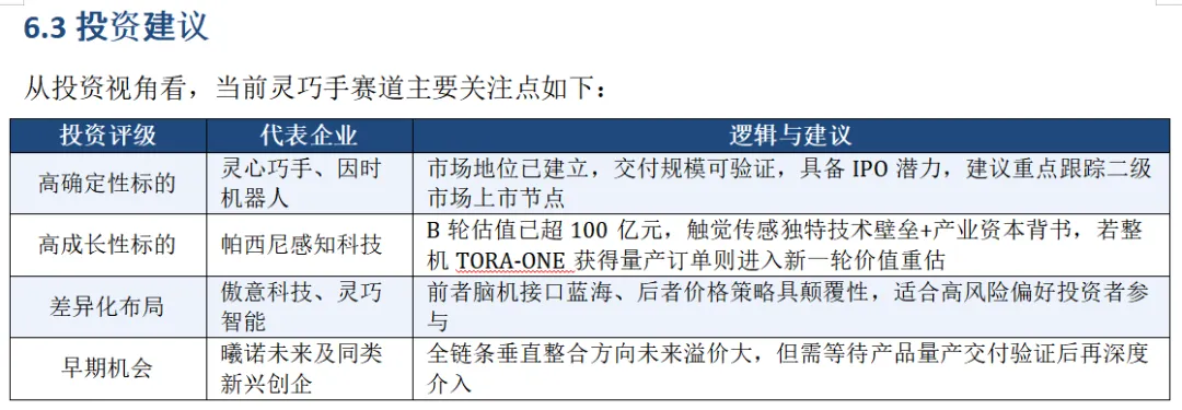 ·IPO预期酝酿:灵心巧手和因时机器人均具备北交所/科创板上市条件,2026-2027年或启动上市进程。