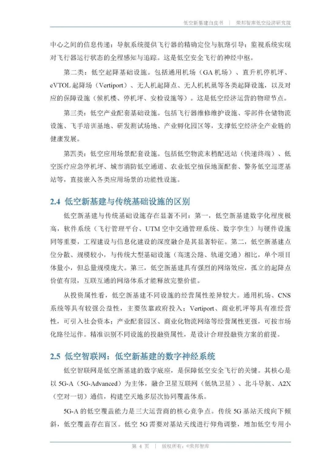 低空新基建是低空经济的底座,具有公共基础设施属性,政府主导投资是必然路径,专项债是主流模式。 四位一体体系正在形成:空管通信(CNS)、起降设施(Vertiport/停机坪)、产业配套(机库/维修/培训)、应用场景配套(物流末梢/医疗/警务)共同构成低空新基建的完整版图。通信网络是当前低空新基建建设最迫切的短板,5G-A 与低空专网是三大运营商的必争之地,已形成三足鼎立格局。市场进入窗口期紧迫:2025 年至2026 年是低空基础设施集中招标的窗口期,未在此期间建立市场地位,后续竞争成本将大幅提升。