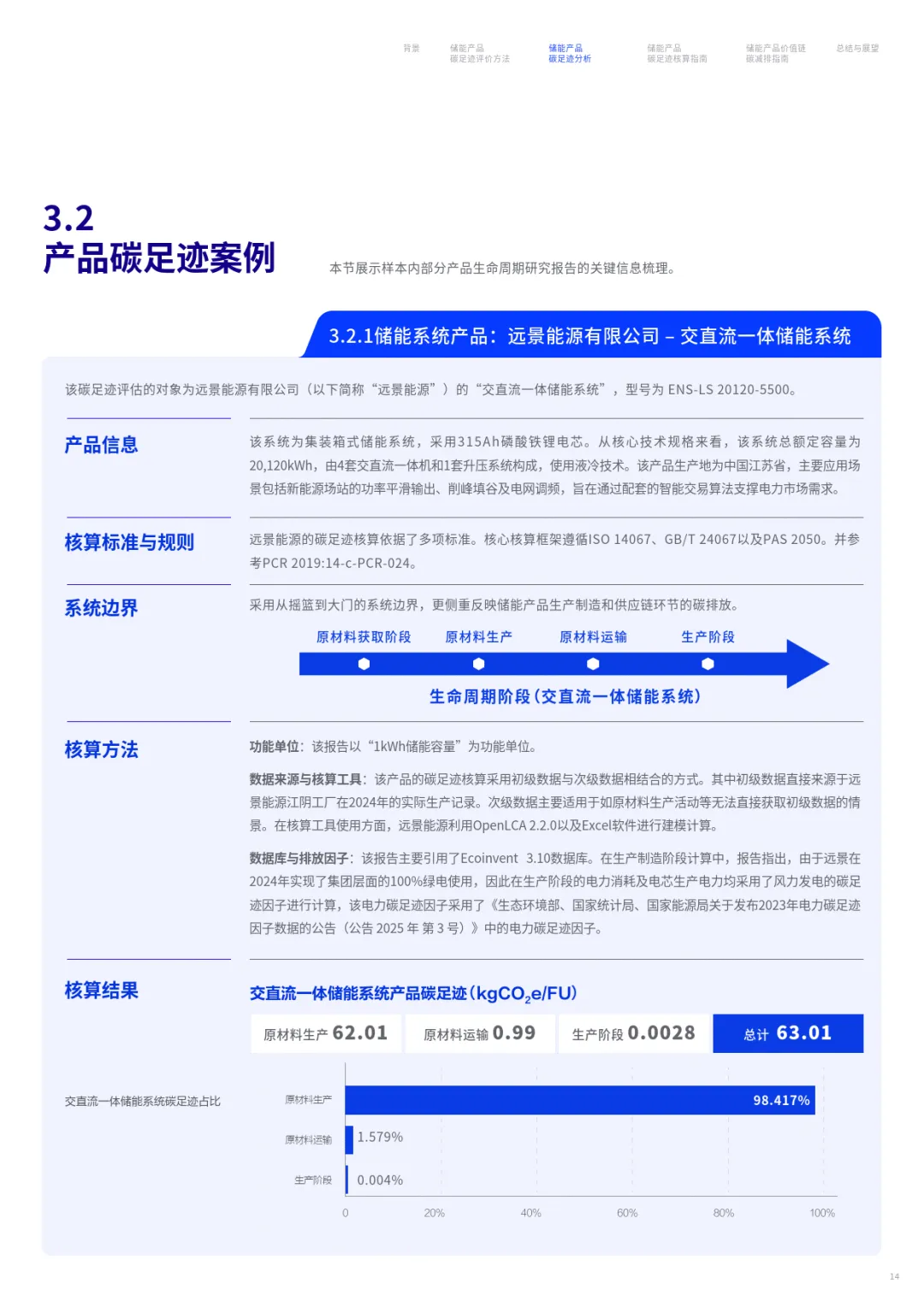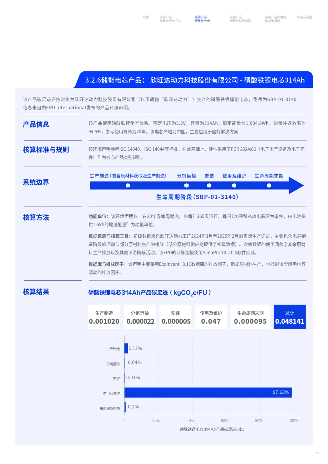 白皮书梳理了储能碳足迹核算的通用与行业标准,通用标准以 ISO 14067、GB/T 24067 为核心,行业规则包括欧盟 CFB-IND、国内锂离子电池团体标准等。核算功能单位分两类,一类是基于系统容量的 1kWh 存储能量,另一类是基于寿命总放电量的 1kWh 输出电量;系统边界以 “从摇篮到坟墓” 全生命周期为主,欧盟规则暂不纳入使用阶段。数据采集优先使用企业可控环节初级数据,次级数据需满足时间、地域、技术代表性要求。