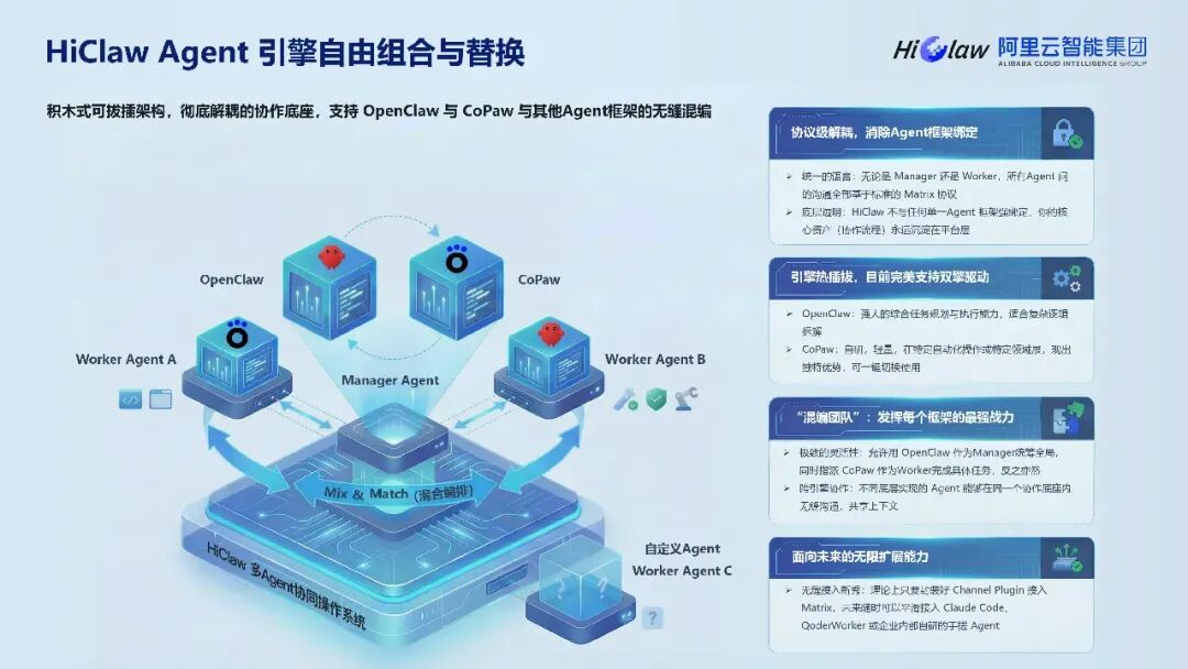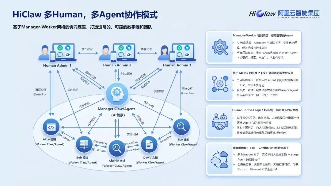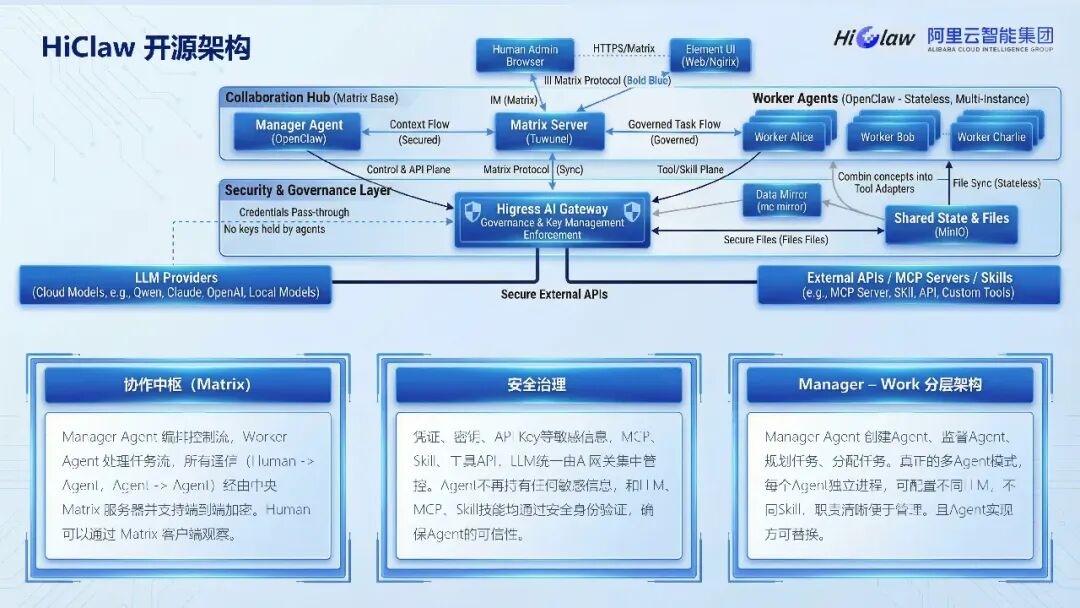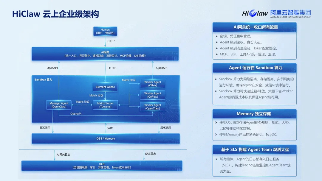 这份阿里云 2026 年 HiClaw 企业级规模化养虾指南报告,围绕 HiClaw 多 Agent 协作统一底座展开,还介绍了配套的 CoPaw、Nacos 3.2 Skill Registry 及 LoongSuite 等工具,构建起企业级 AI Agent 全链路体系。HiClaw 核心定位为协作纳管平台,区别于个人级 AI 助理,采用 Manager+Worker 架构,通过分布式 Sandbox、AI 网关集中管理实现资源优化,相比传统方案可节省 60-80% 成本,其架构从开源单机版演进至云上企业版再到全托管独立产品,适配从个人开发者到大型企业的不同需求。