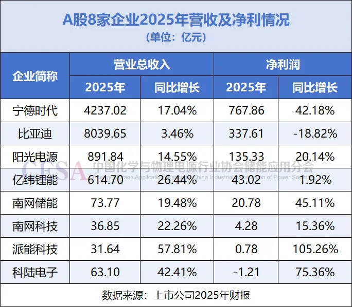 A股8家储能企业2025年财报盘点:营收、利润、出货量一览!